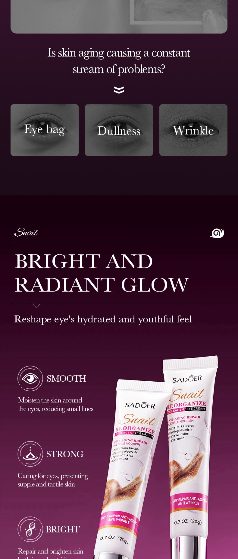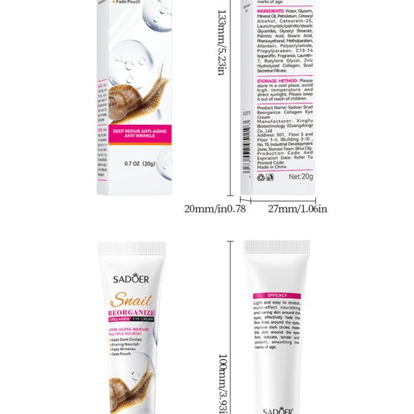 Be the first to review “Snail Collagen Eye Cream Anti Dark Circles Remove Eyes Bags Moisturizing Firming Beauty Eyes Skin Care Products”